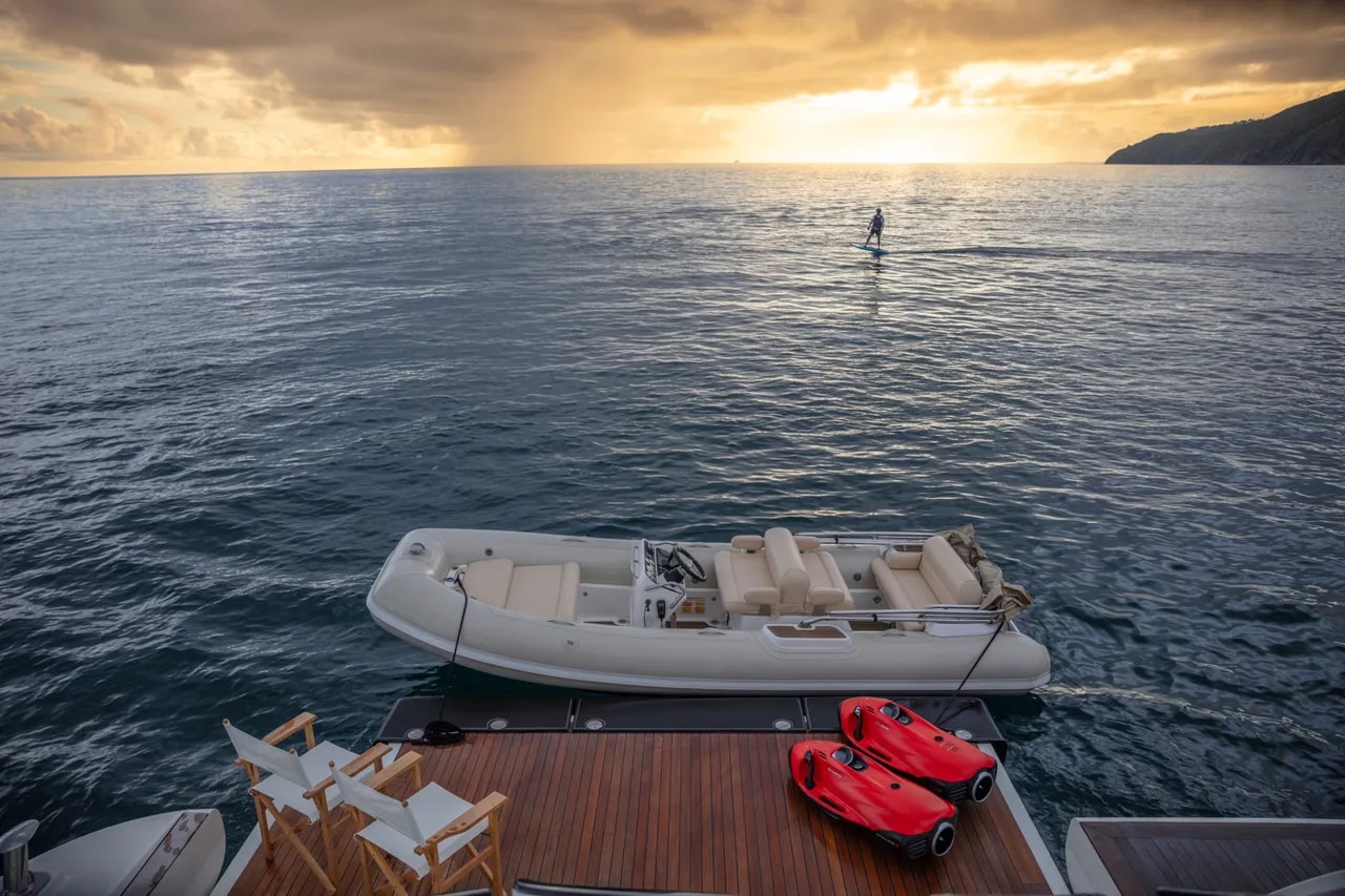 The 38-foot Boston Whaler is the perfect tender, offering versatility, speed, and comfort to seamlessly complement the luxury and adventure of your yacht experience.